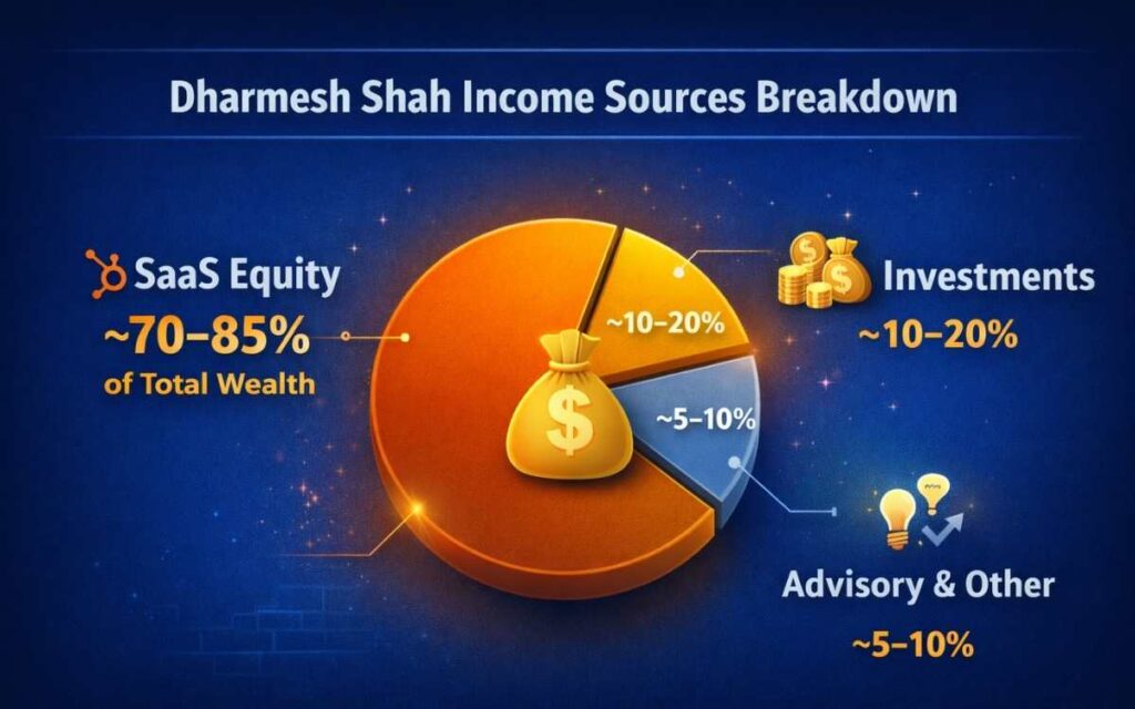 Dharmesh Shah’s income comes from multiple high-value sources: